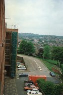 View of the back or Chettle Court 1990/91. Roof repair.